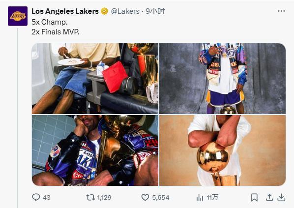 12、湖人官方:“5届总冠军、两届FMVP”